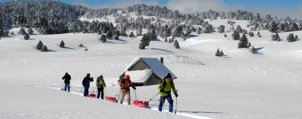 Accueil à votre hébergement à Rousset en Vercors, au pied de la réserve naturelle des Hauts Plateaux du Vercors. Vérification du matériel, raquettes, pulkas, sacs. Première petite balade pour tester le matériel.