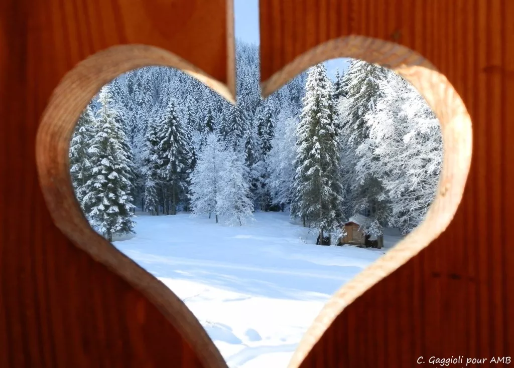 Dans un vallon sauvage, nous remontons un torrent étouffé par la neige. Nous entrons dans une forêt mystérieuse hantée par les chants des chouettes boréales et où la martre chasse l’écureuil.