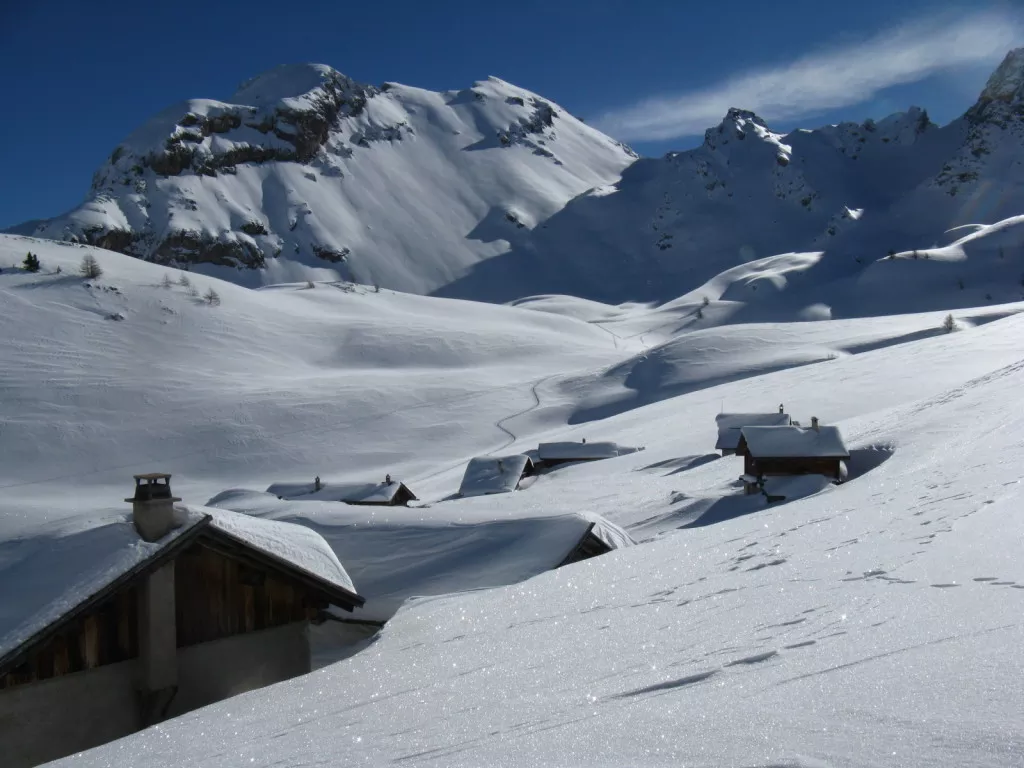 De la Chalp, belle traversée jusqu’au lac de Roue (gelé en hiver, mais avec de fabuleux belvédères sur la vallée du Guil). Vous pouvez à partir du lac rejoindre le hameau pastoral de Souliers. Possibilité de casser la croute au refuge. Depuis Souliers, retour au lac de Roue, puis par le GR, vous rejoignez la vallée d’Arvieux, pour profiter de la piscine chauffée de votre hôtel.